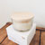 Mooie luxe geurkaars (Fresh linen & Sakura blossom) met 3 houten wieken. Het houten deksel kan gegraveerd worden met een ontwerp of tekst naar keuze!
