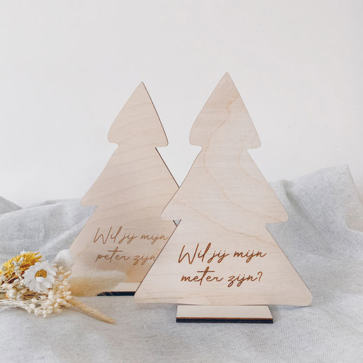 Ontdek onze mooie houten kerstboompjes, gegraveerd met een naam, tekst of boodschap naar keuze.