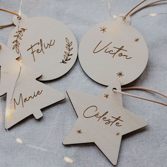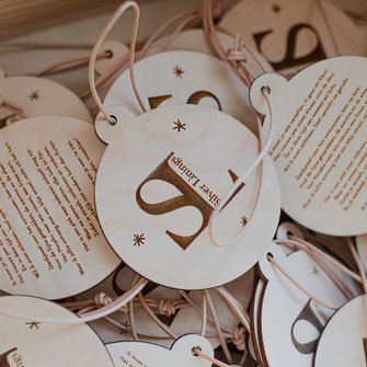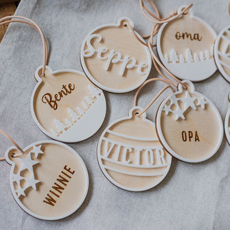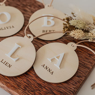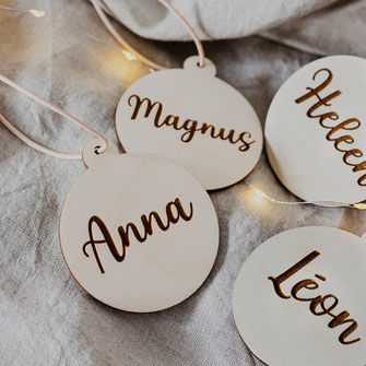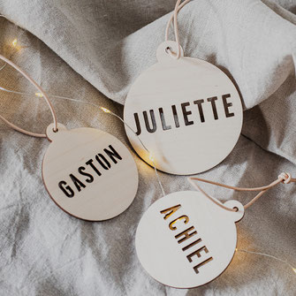 Ontdek onze mooie houten kerstballen, gegraveerd met een naam, tekst of boodschap naar keuze.